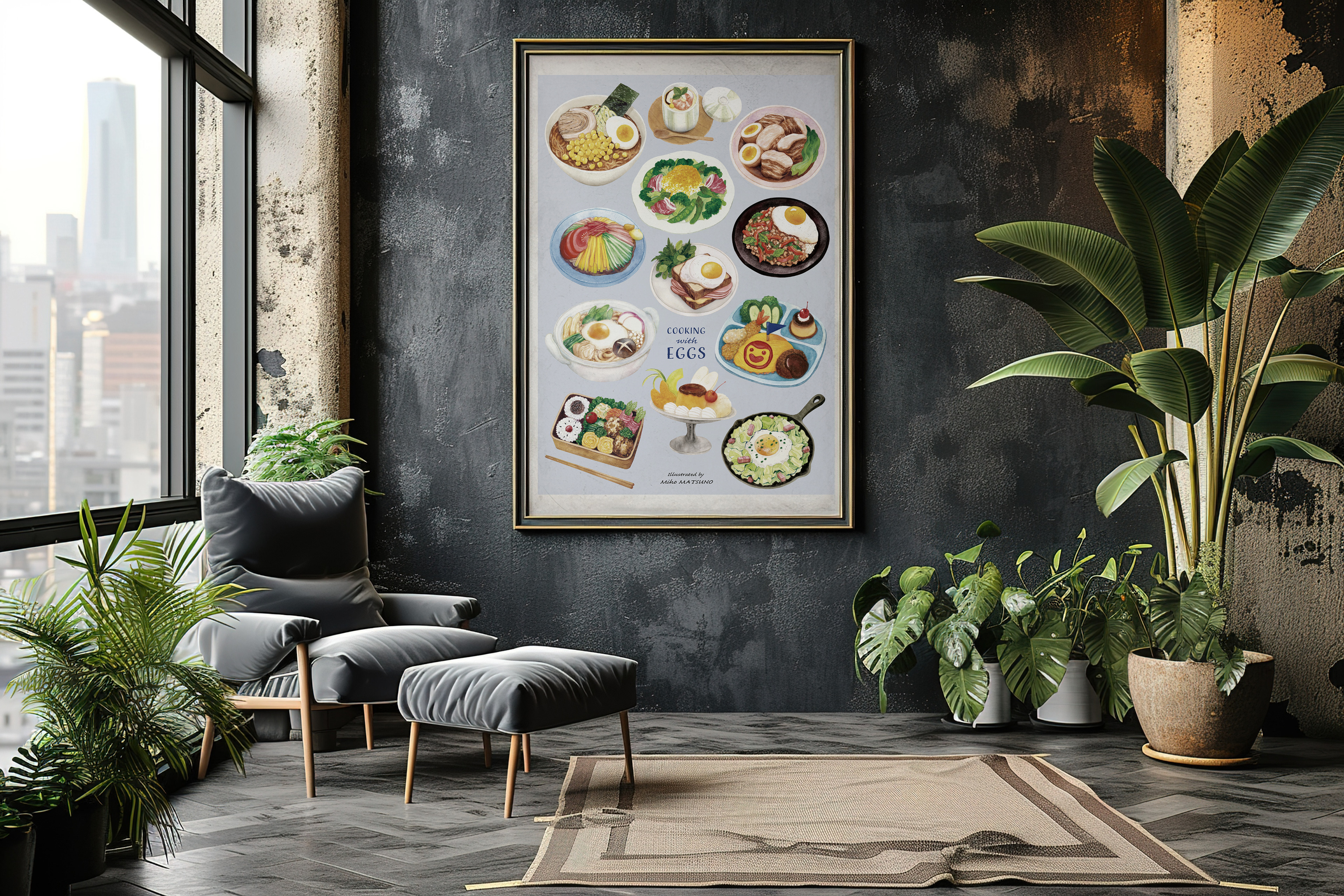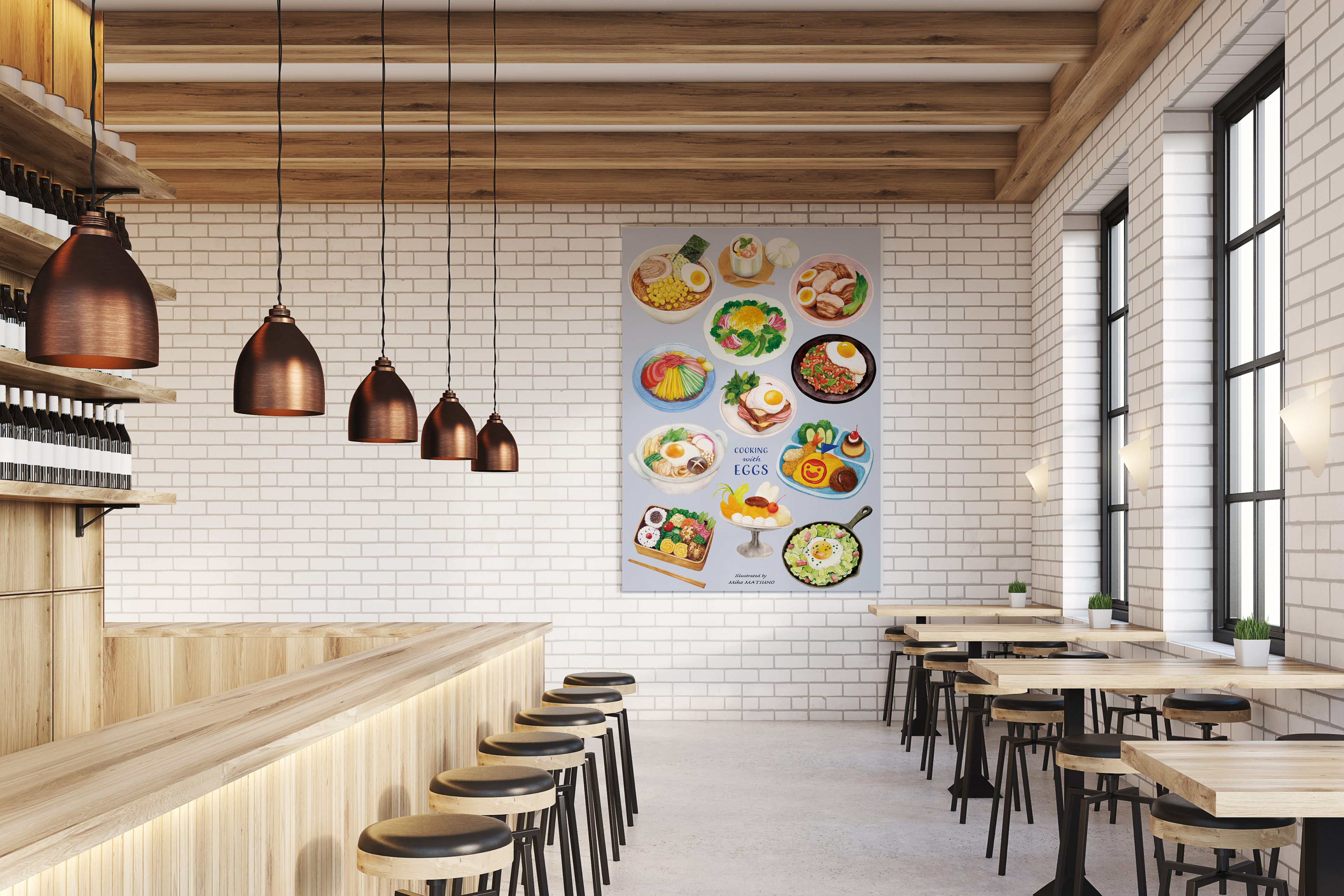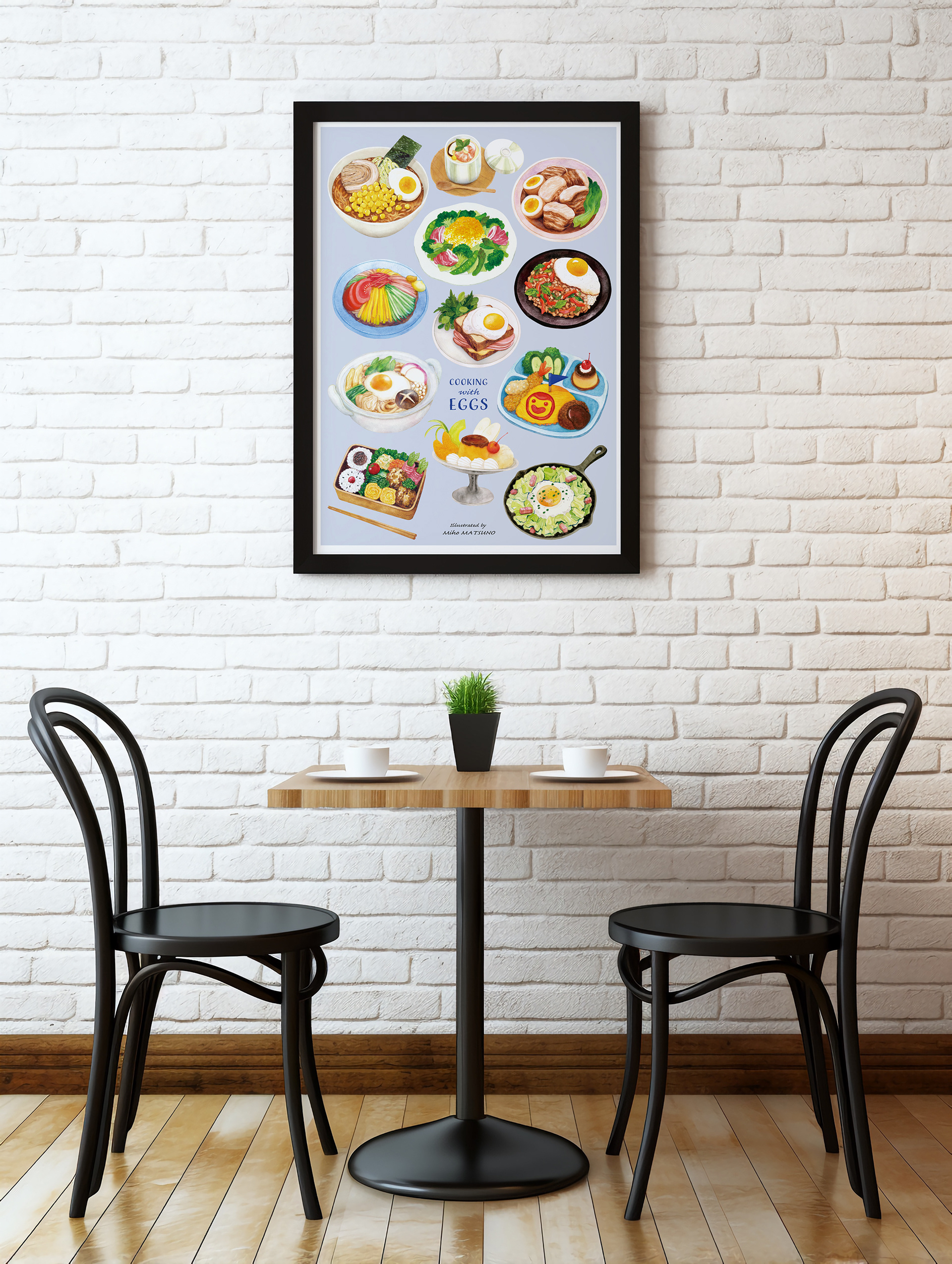 Restaurant poster with illustration of egg dishes.